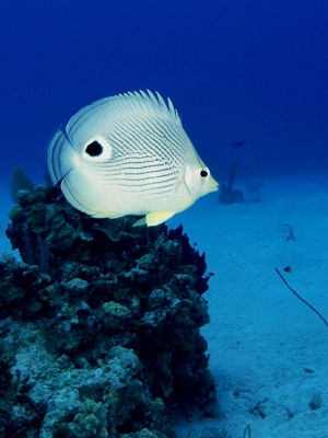 Your strobes can only penetrate a few feet underwater. That means your background is going to be some shade of blue in tropical water. Of course, that assumes there is open water behind your subject (usually a good idea). You can control the “shade” of that blue background water by varying your f-stop or aperture.