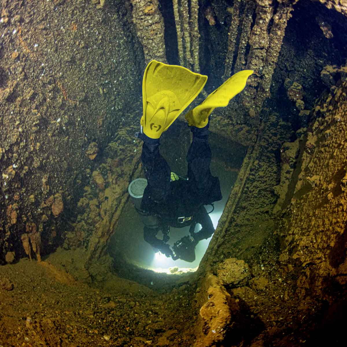 The Hollis F1 LT Fin combines lightweight SEBS compound construction with a purpose-driven vented short-blade design to deliver powerful, efficient propulsion — especially in confined, technical dive environments. Its vented blade minimizes drag and enhances thrust per kick, reducing diver effort and fatigue on long dives.