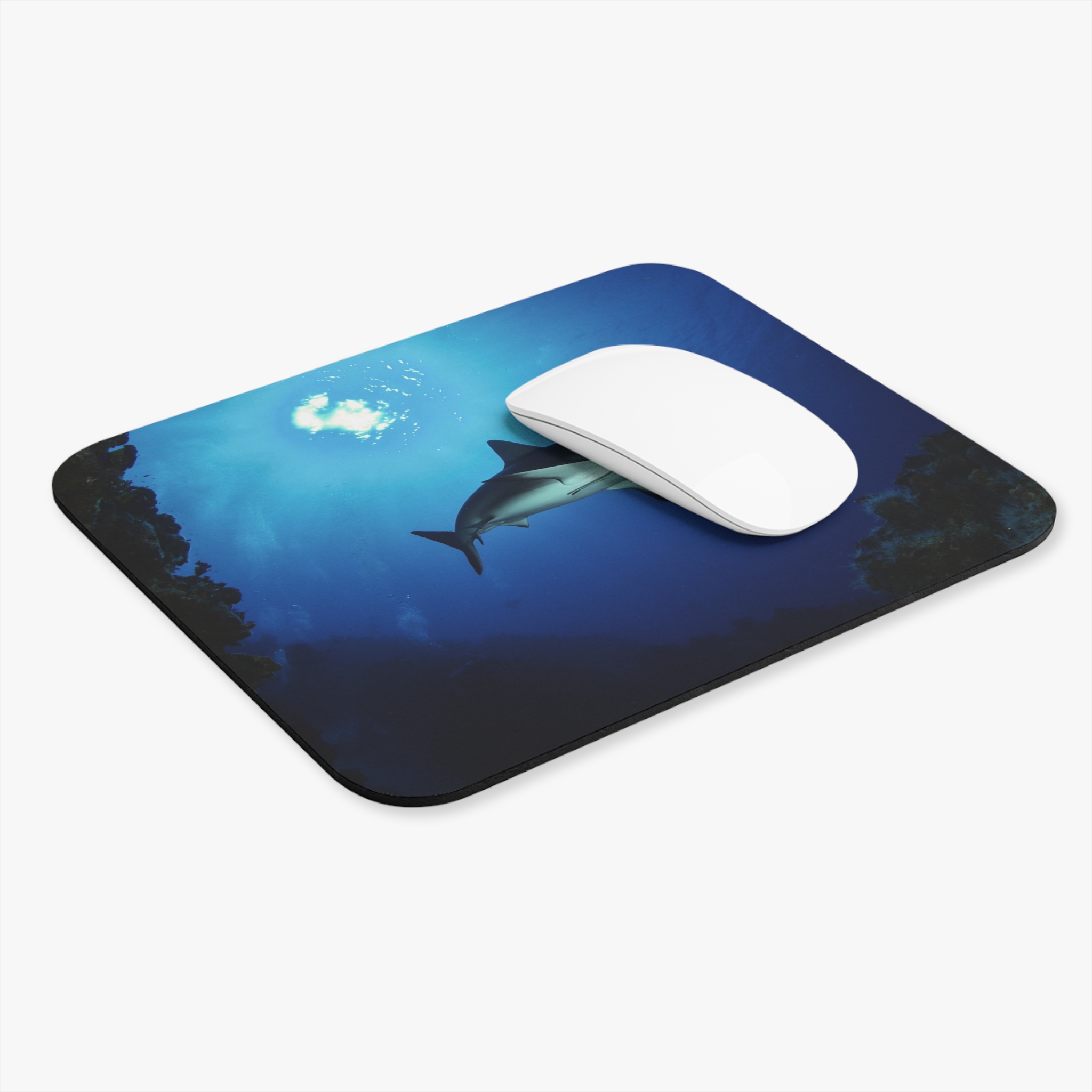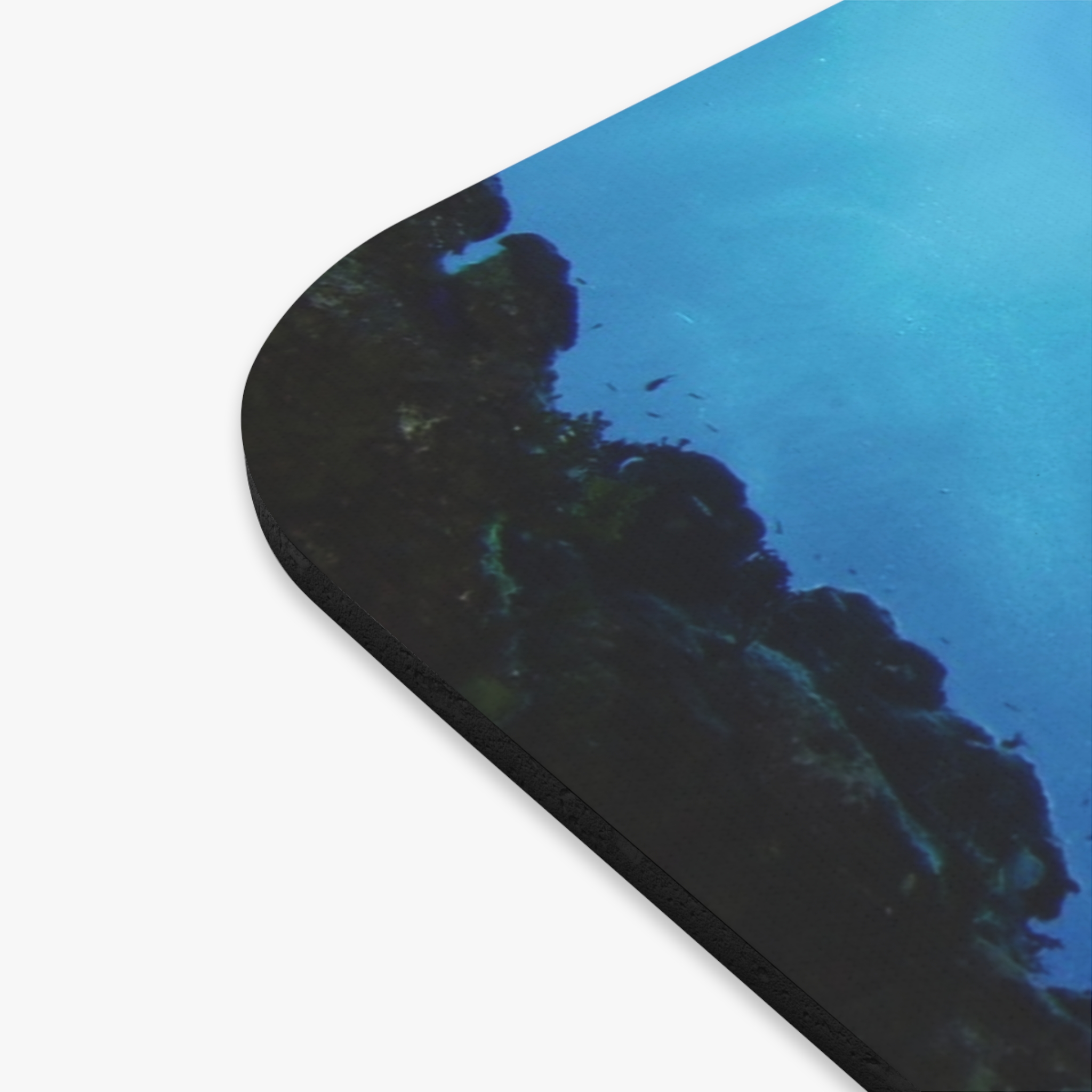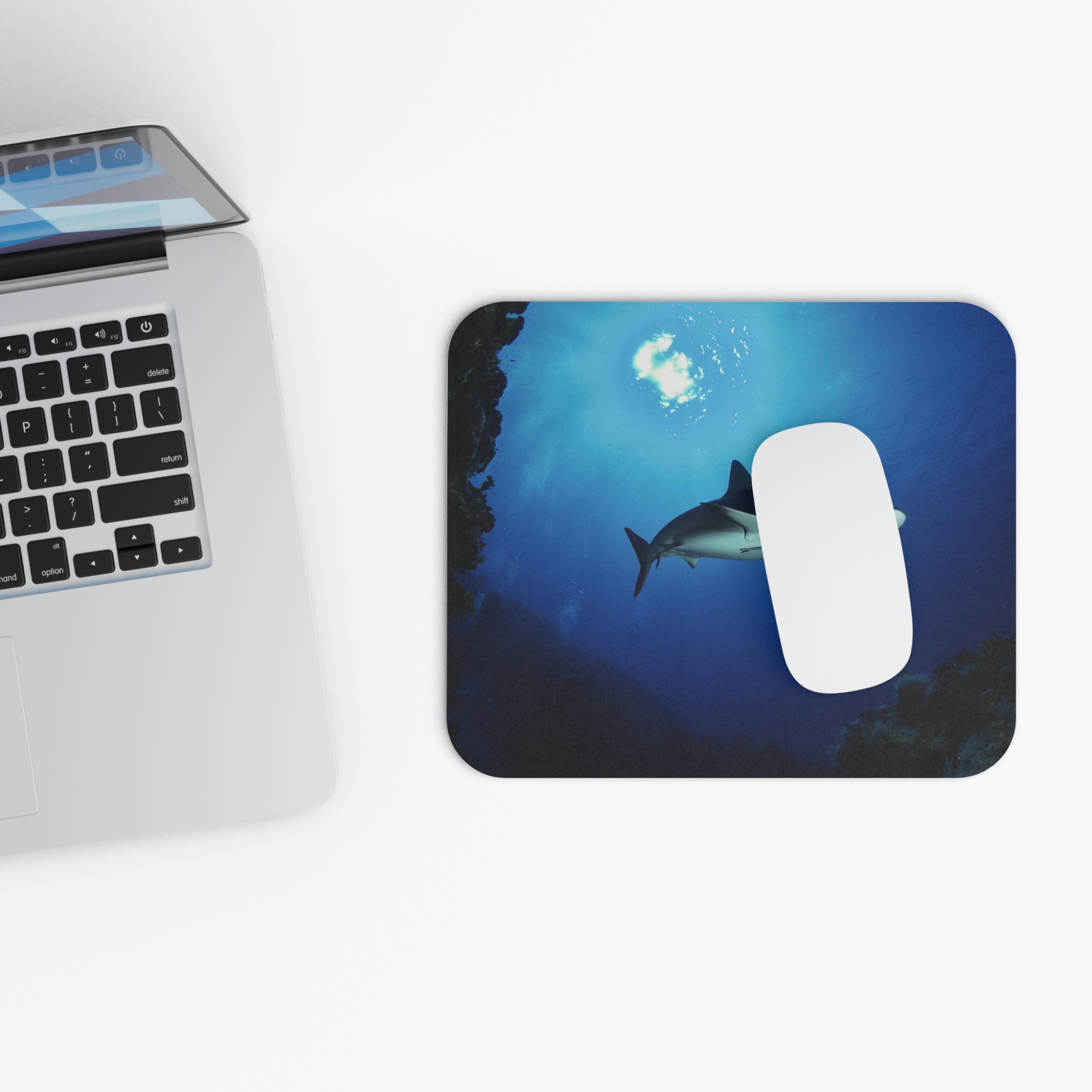 Slide your hand across a cool, glassy surface and imagine descending into the blue. This rectangular mouse pad brings a quiet coral-reef moment to your desk: a sleek reef shark gliding beneath a sunlit water column. The colors are vivid and saturated across the full front print, so each stroke of your mouse feels connected to that underwater stillness. It’s low-profile and grippy — unobtrusive on a crowded desk but steady enough for focused work or long gaming sessions. Keep the ocean close while you edit photos, sketch, or sort through emails; the image calms the pace and sharpens attention without shouting for notice.