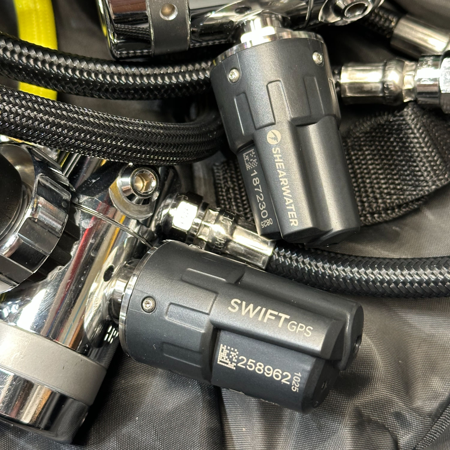 SWIFT GPS is also built for real-world diving where multiple transmitters might be in the water at once. Its active interference avoidance system helps it play nice around other transmitters, making it a great fit for teams, classes, or multi-tank setups. It’s nitrox ready, depth rated to 200 m (650 ft), and runs on a user-replaceable CR2 battery—simple, durable, and easy to keep in rotation.